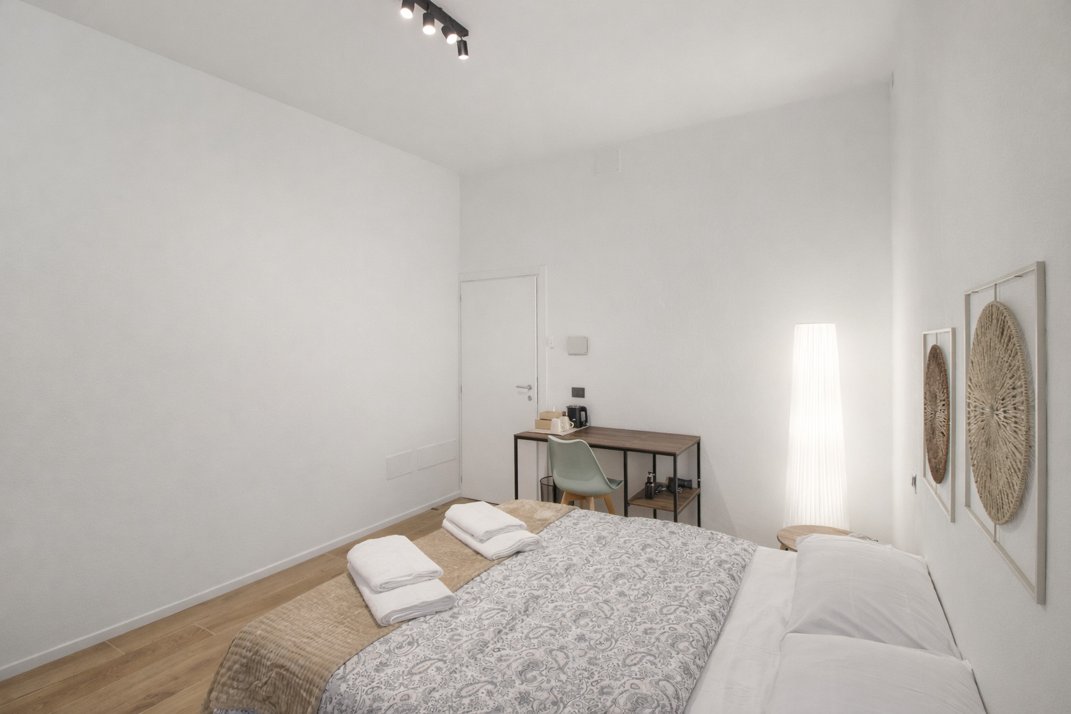 La suite, luminosa e arredata con attenzione, consiste in 2 camere matrimoniali ed una camera tripla, armadi, scrivanie, linea cortesia e bollitori
