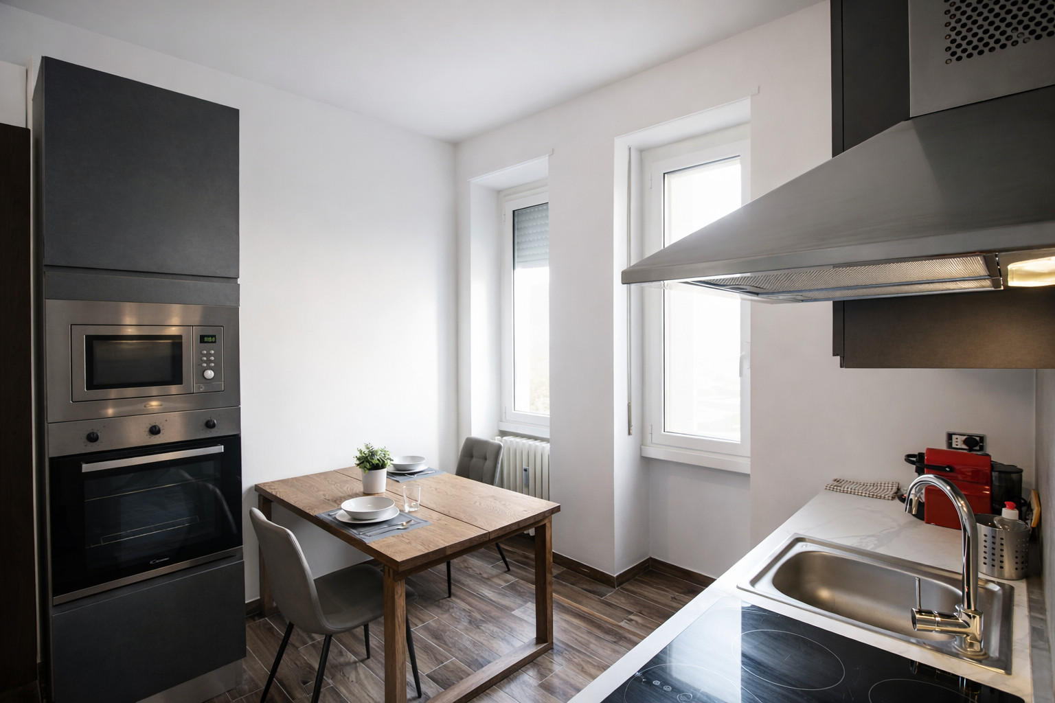 La cucina è completamente attrezzata e ti fa sentire come se fossi a casa